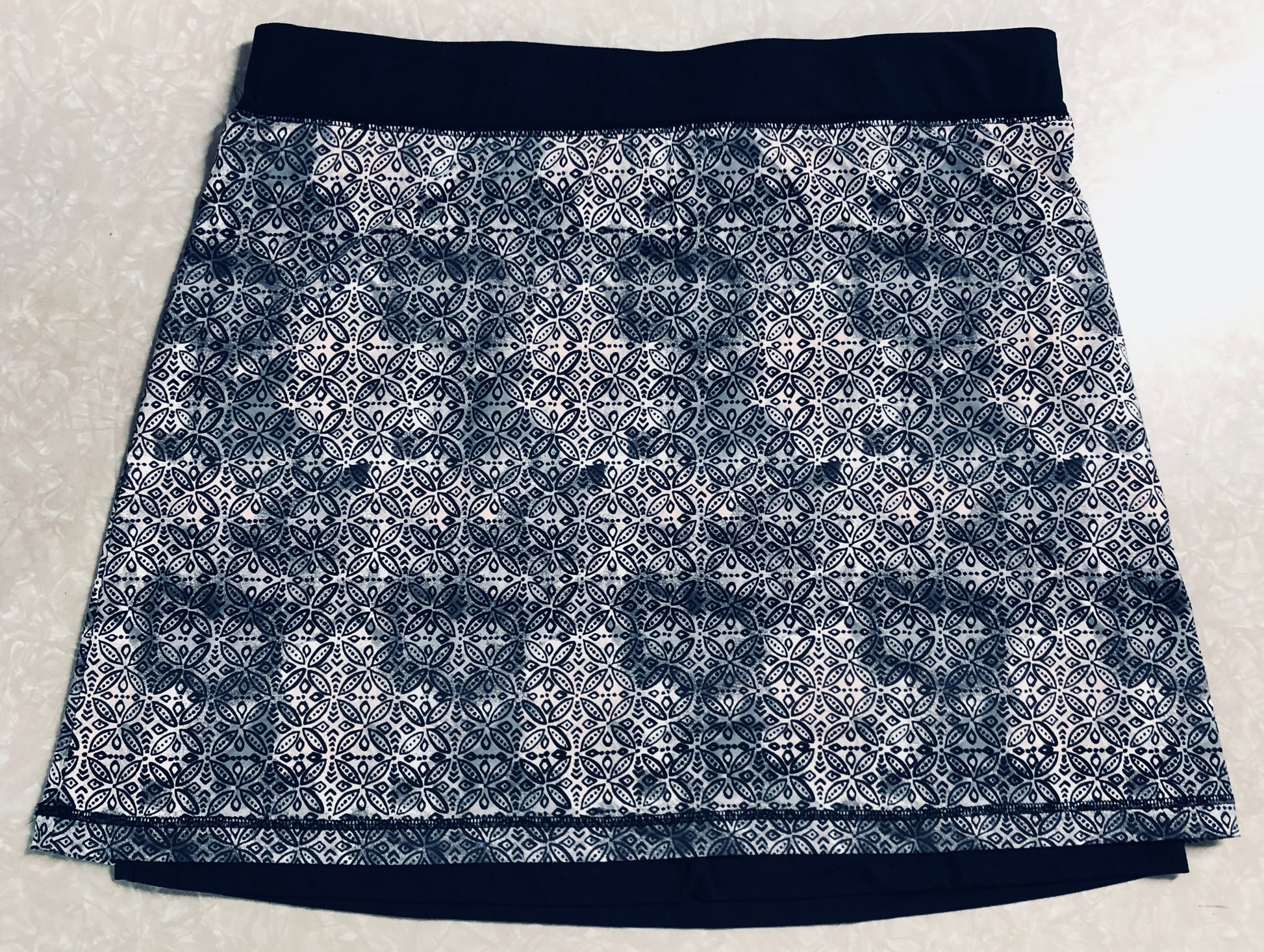 Travel and destination dressing just got better with this reversible skirt. Go from solid to print or texture in a soft-brushed double-layer knit stretch blend.